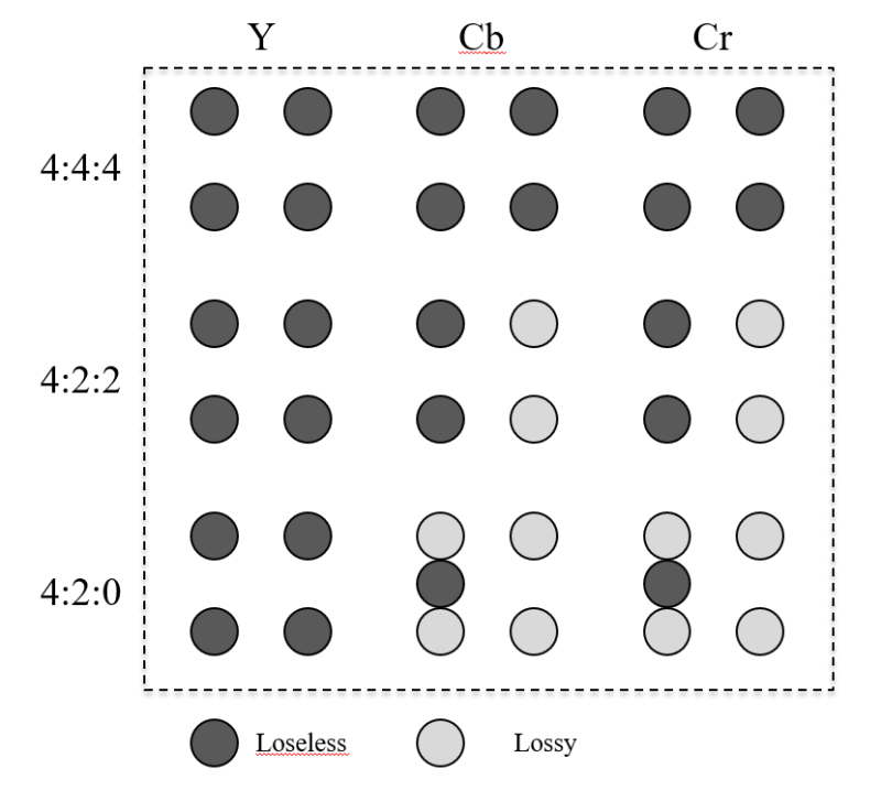 따라서, HEVC를 포함한 대부분의 비디오 압축 표준 코덱들은 YCbCr 4:2:0 샘플링 포맷을 영상 입출력 포맷으로 사용한다.